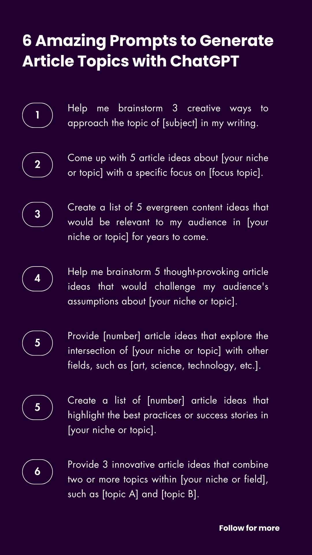 6 Amazing prompts to generate article topics with ChatGPT. Know more:- www.sidharthkavil.com